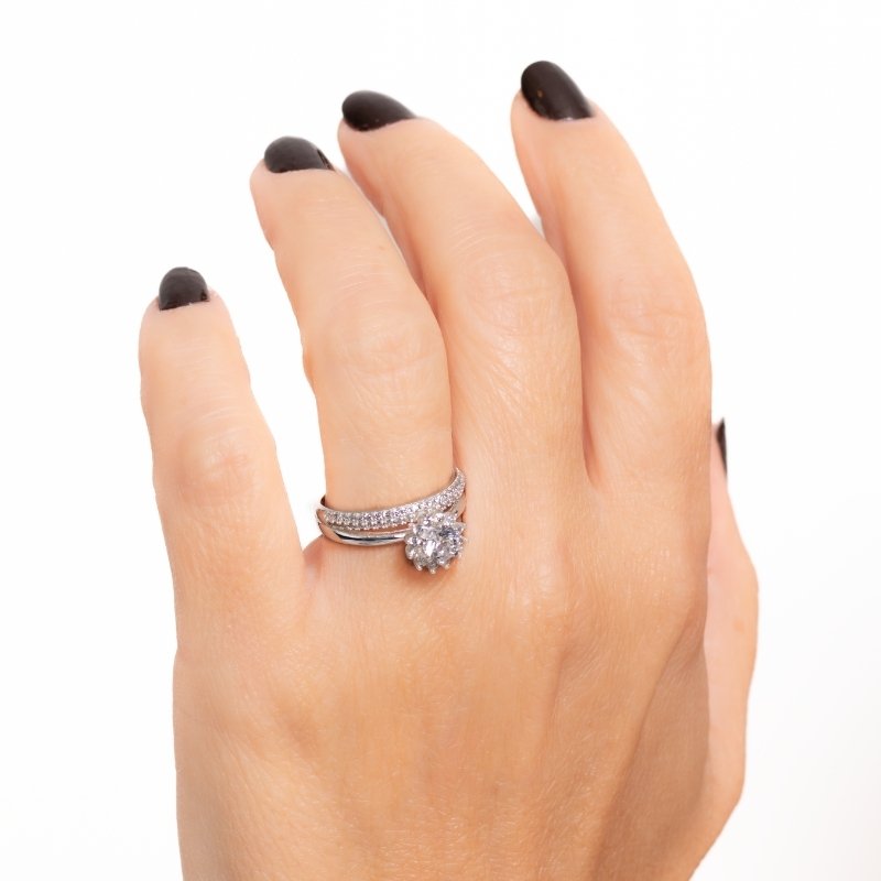 Anel 2em1 Flor Cravejada Prata 925 Com Banho De Rodio-sr