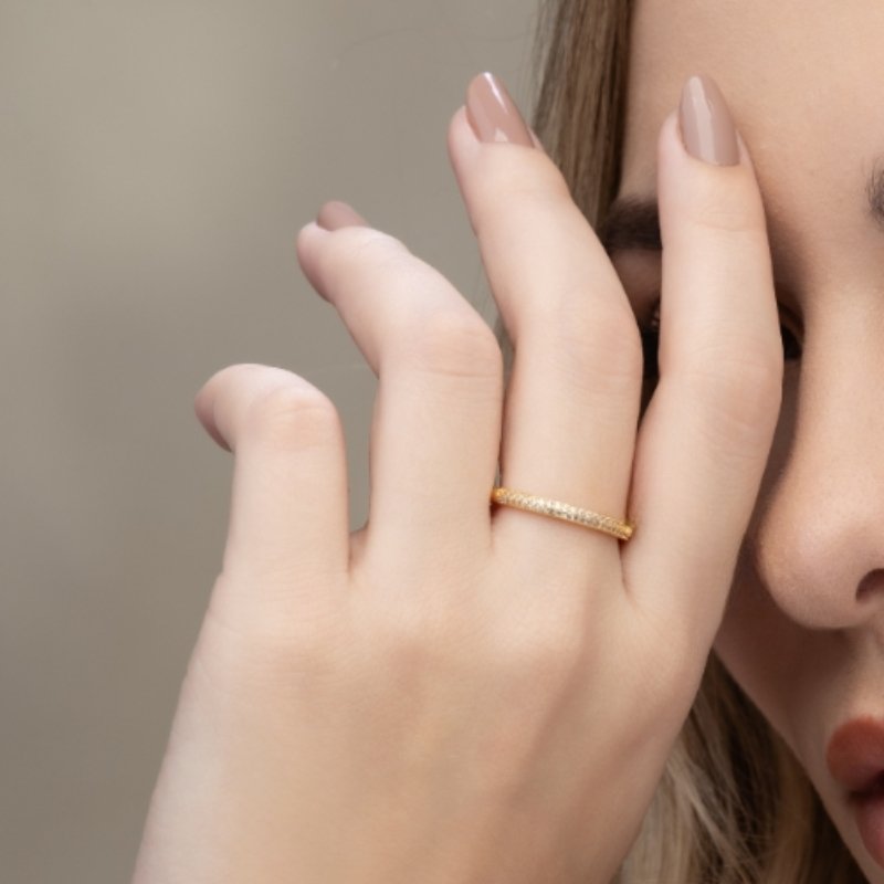 Anel Aparador Com Duas Fileiras De Zircônias