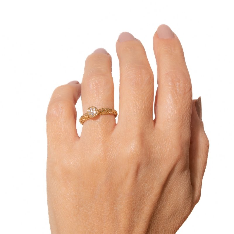 Anel Chuveirinho Vazado 6mm, brilho marcante em um design leve e sofisticado.Brincos e piercing fake: 5 milésimos de Ouro 18k.