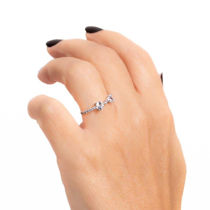 \"Anel com dois corações em zircônias, banhado em prata 925, uma peça delicada e cheia de charme.\"Peças em PRATA 925.