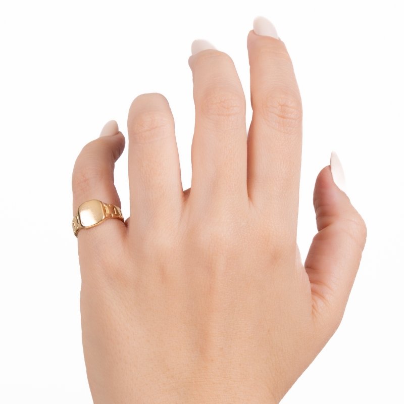 Anel dedinho estilo relógio, design ousado e marcante para compor looks cheios de personalidade.Brincos e piercing fake: 5 milésimos de Ouro 18k.
