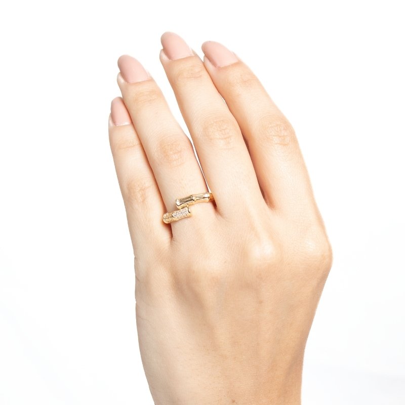 \"Anel Graveto Cravejado em Zircônia: Textura única e brilho sutil para um toque de sofisticação.\"Brincos e piercing fake: 5 milésimos de Ouro 18k.