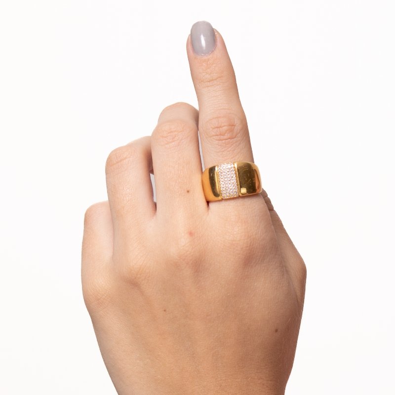 Anel Largo com 5 Fileiras em Zircônia Cristal: luxo e brilho em um design deslumbrante!Brincos e piercing fake: 5 milésimos de Ou Brincos Ouro 18k.