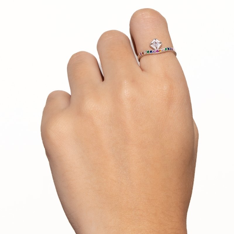 Anel Losango com Zircônias Coloridas em Prata 925, design sofisticado com toque vibrante.Peças em PRATA 925.