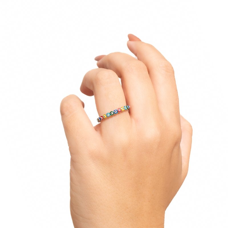 \"Anel Olho Grego em Prata 925 com Banho de Ródio-SR, um amuleto de proteção com design elegante e sofisticado.\"Peças em PRATA 925.