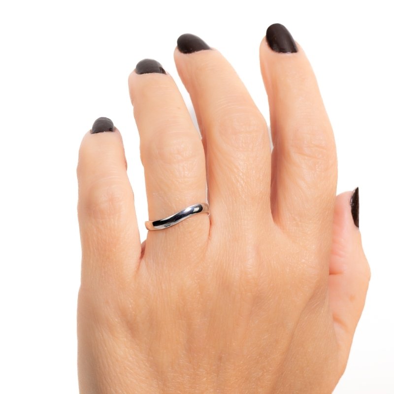 \"Anel ondulado liso em prata 925, com design moderno e elegante, perfeito para um look discreto e sofisticado.\"Peças em PRATA 925.
