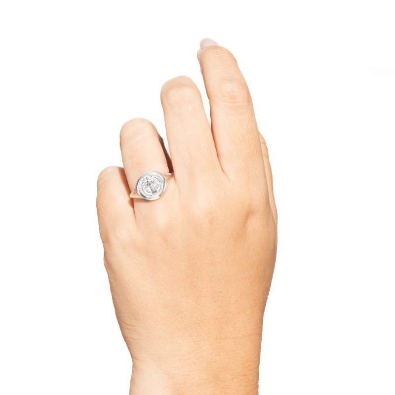 \"Anel São Bento em prata 925, um símbolo clássico de fé e proteção, aliado a um design elegante e atemporal.\"Peças em PRATA 925.