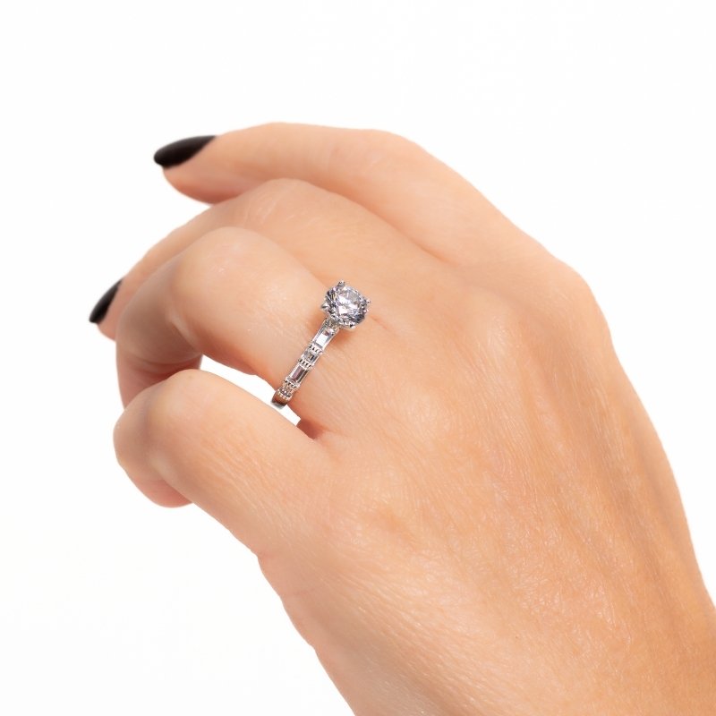 Anel Solitário 7mm com Riviera Baguete em Prata 925-SR, uma semijoia sofisticada e elegante, que combina brilho e delicadeza para um toque de luxo ao seu visual.Peças em PRATA 925.