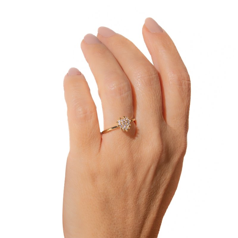 Anel Solitário Coração 8mm com Zircônias, brilho e romantismo em um design delicado e apaixonante.Brincos e piercing fake: 5 milésimos de Ouro 18k.