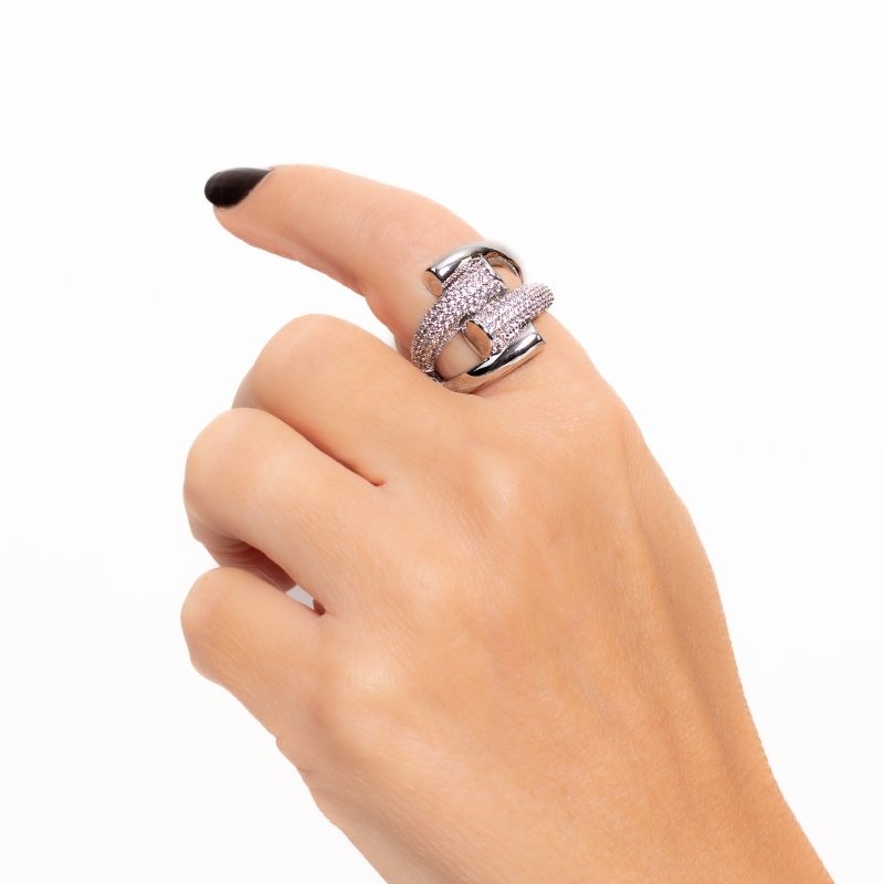 Anel Trançado com Zircônias em Prata 925 e Banho de Ródio-SR, uma semijoia elegante e sofisticada, que combina design único e brilho para um toque de luxo ao seu estilo.Peças em PRATA 925.