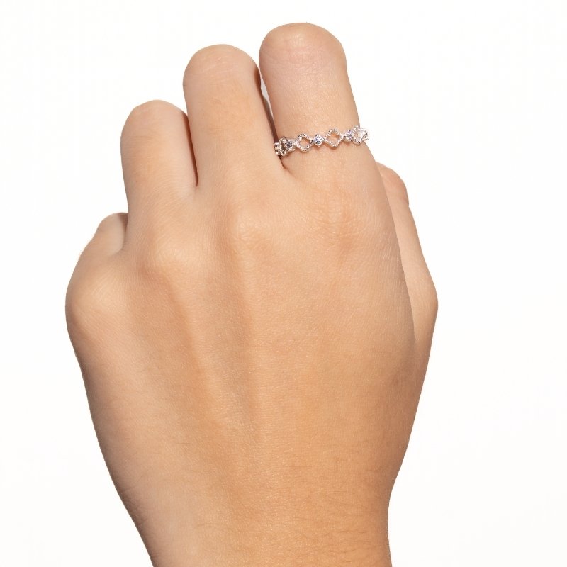 Anel Trevo com Zircônias em Prata 925-CS: brilho e sorte em um design delicado e elegante.Peças em PRATA 925.