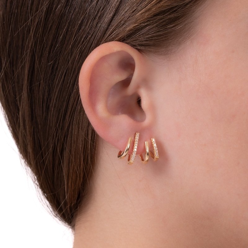 Brinco 4 Fileiras, sendo duas com zircônias, combinando brilho e elegância em um design moderno.Brincos e piercing fake: 5 milésimos de Ouro 18k.