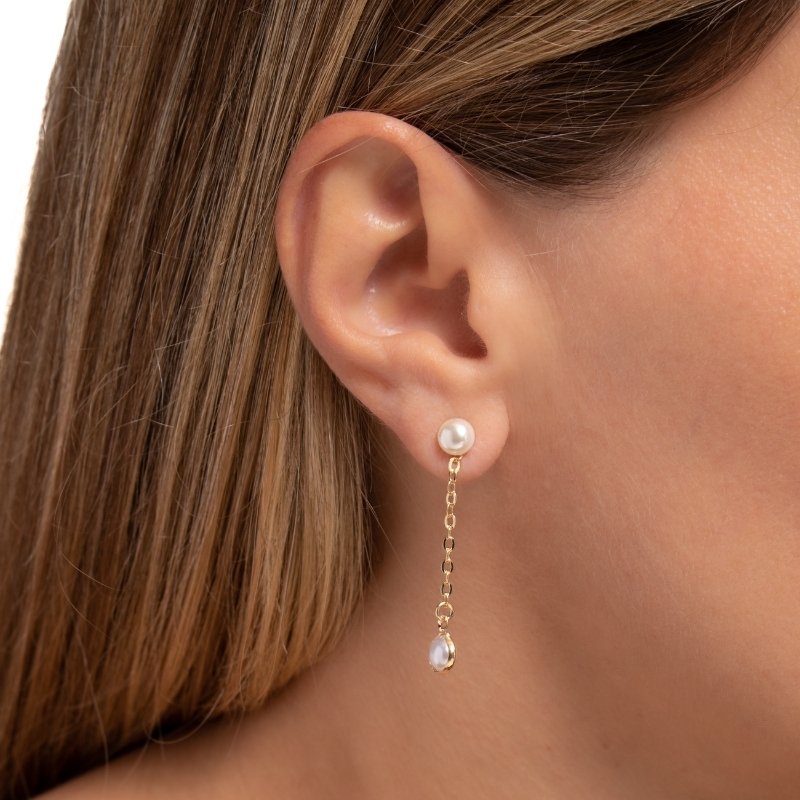 Brinco 2 em 1 Cadeadinho com Pérola: versatilidade e elegância em um único design moderno e delicado.Brincos e piercing fake: 5 milésimos de Ouro 18k.