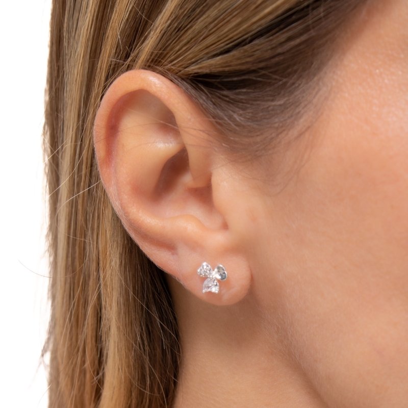 Brinco prata 925, composto por três corações delicadamente cravejados proporcionando brilho intenso e estilo sofisticadoPeças em PRATA 925.