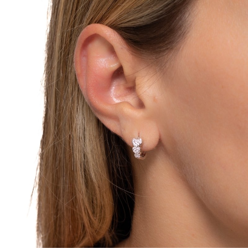 Brinco articulado com coração cravejado, elegante e sofisticado, ideal para compor looks deslumbrantes.Brincos e piercing fake: 5 milésimos de Ouro 18k.