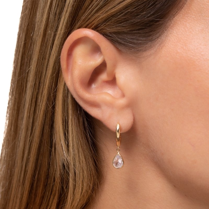 Brinco Articulado Gota 11mm: movimento elegante com design moderno para um visual sofisticado.Brincos e piercing fake: 5 milésimos de Ouro 18k.