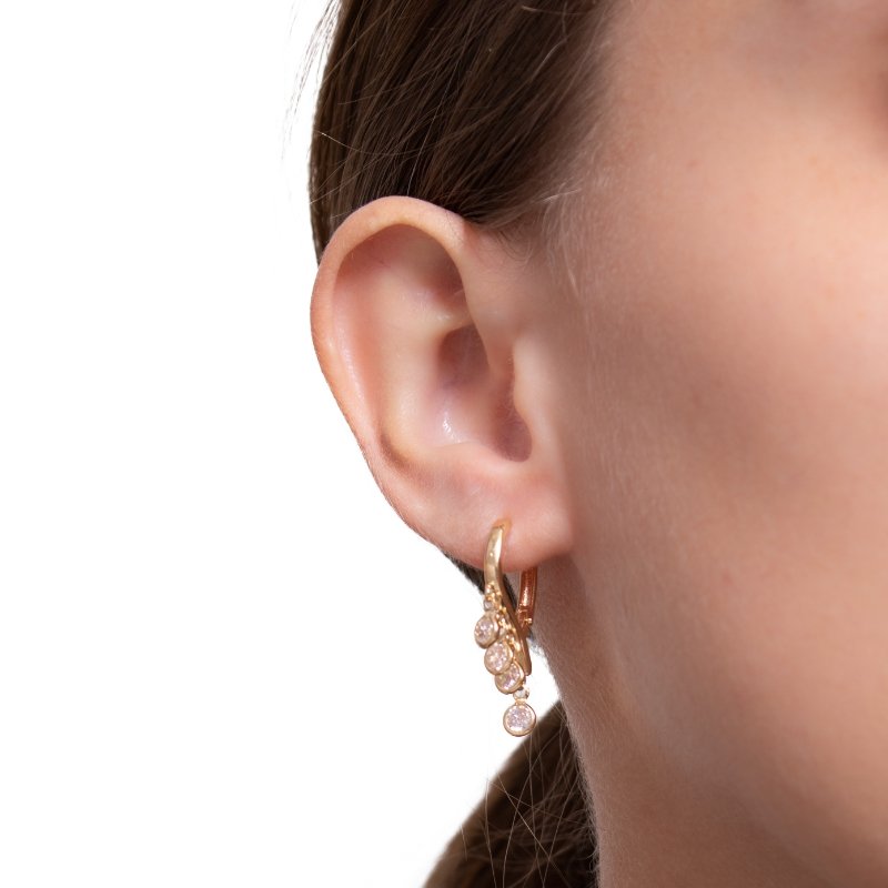 Brinco articulado em formato de gota com 4 zircônias, brilho sofisticado para destacar sua elegância.Brincos e piercing fake: 5 milésimos de Ouro 18k.