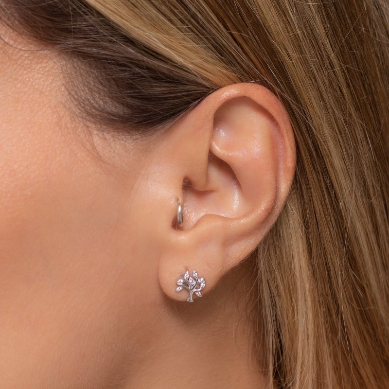 \"Brinco Árvore da Vida 8mm em prata 925 com banho de rodio, simbolizando equilíbrio e harmonia com um design delicado e elegante.\"Peças em PRATA 925.