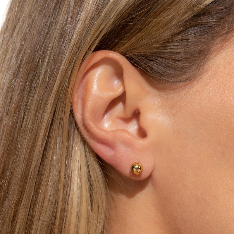 Brinco Bolinha 6mm: simplicidade e brilho, o acessório perfeito para um look clássico e sofisticadoBrincos e piercing fake: 5 milésimos de Ouro 18k.