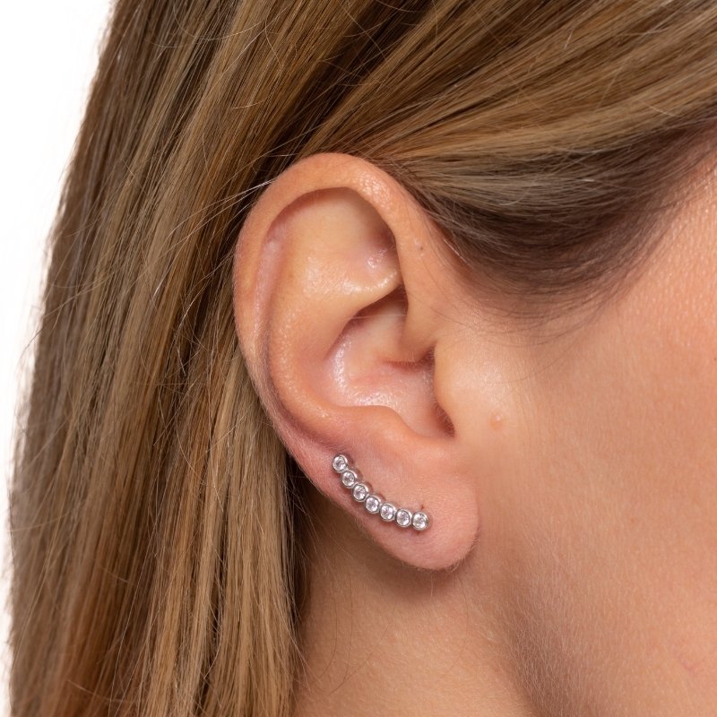 \"Brinco com 7 fileiras de zircônias redondas em prata 925 com banho de rodio, combinando brilho e sofisticação para um look deslumbrante.\"Peças em PRATA 925.