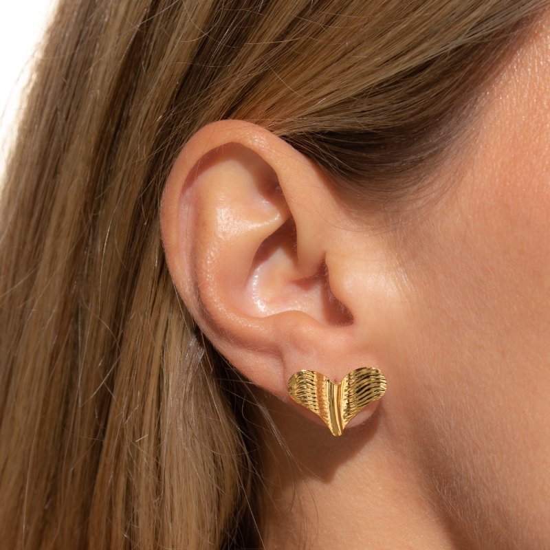 Brinco Coração 13mm Ondulado: Delicado e contemporâneo, com um design ondulado que traz charme e suavidade ao visual.Brincos e piercing fake: 5 milésimos de Ouro 18k.