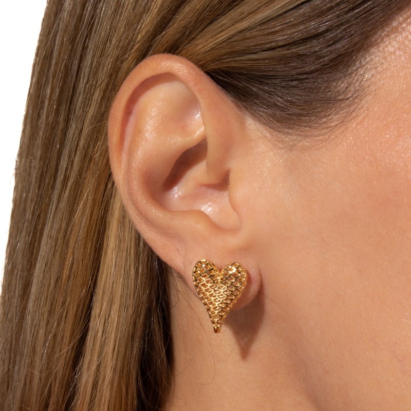Brinco Coração Abaulado 13mm Vazado, design romântico com toque moderno e leve.Brincos e piercing fake: 5 milésimos de Ouro 18k.