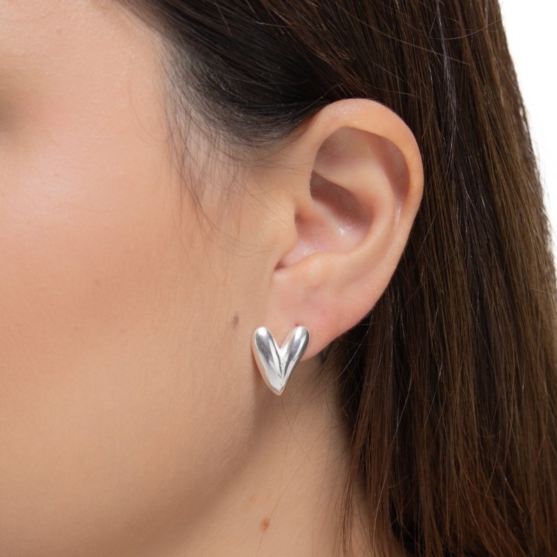 Brinco coração abaulado em prata 925, uma peça delicada e elegante que adiciona charme ao seu visual.Peças em PRATA 925.