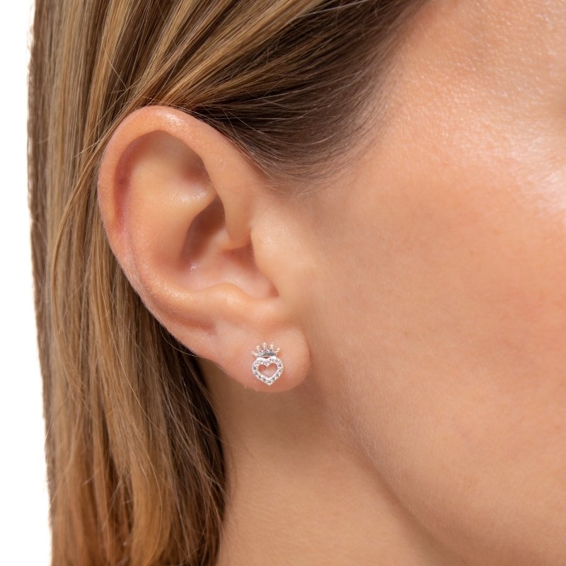 Brinco feminino em prata 925 com zircônia em formato de coração de 8mm, oferecendo brilho intenso e design delicado, perfeito para compor looks sofisticados.Peças em PRATA 925.