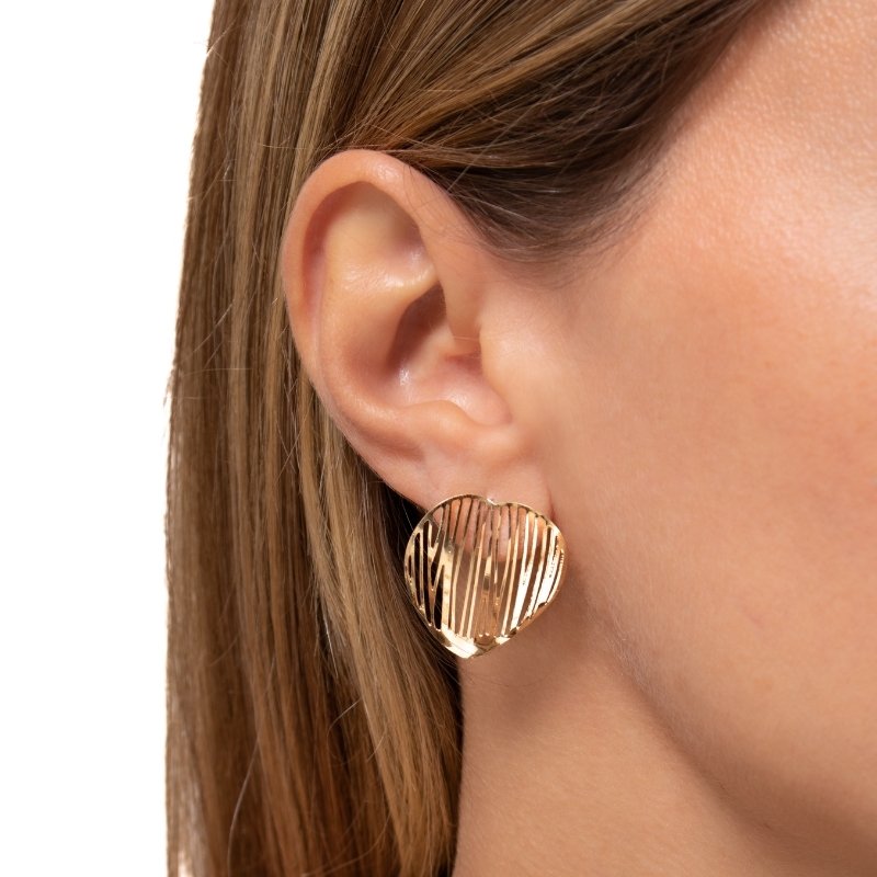 Brinco coração orgânico vazado com design moderno e delicado, ideal para compor looks elegantes.Brincos e piercing fake: 5 milésimos de Ouro 18k.