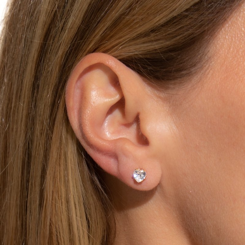 \"Brinco Ponto de Luz Coração: encanto e brilho em formato romântico, perfeito para qualquer ocasião especial.\"Brincos e piercing fake: 5 milésimos de Ouro 18k.
