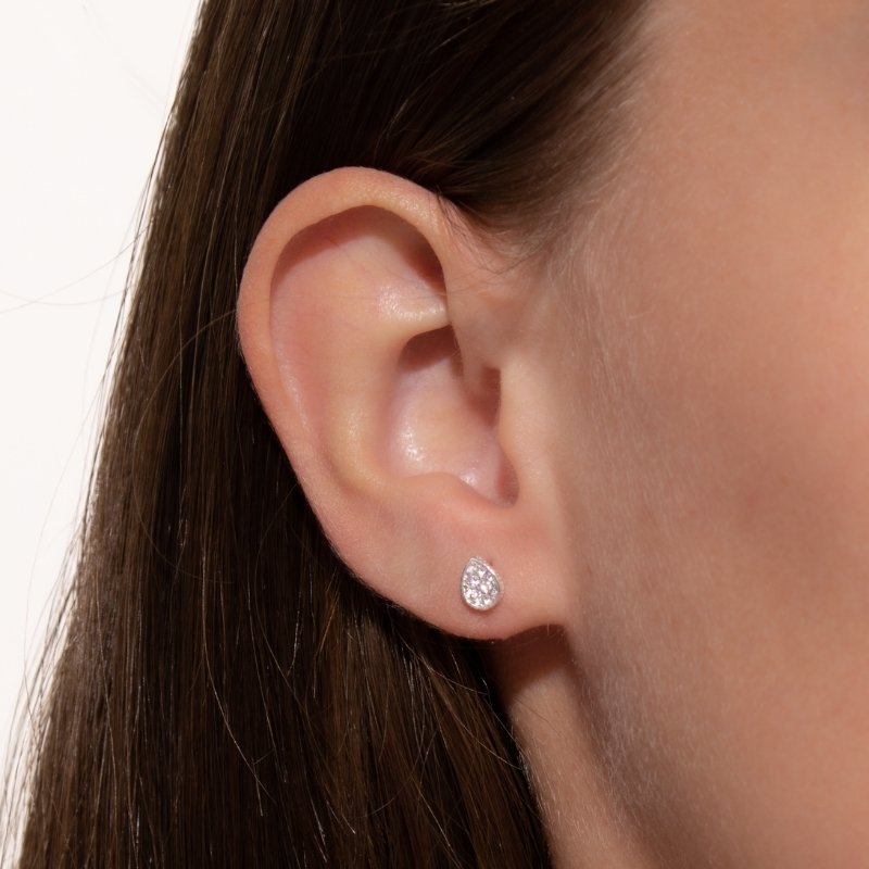 Brinco Gota 6mm Cravejado em Prata 925, delicadeza e brilho em formato clássico.Peças em PRATA 925.