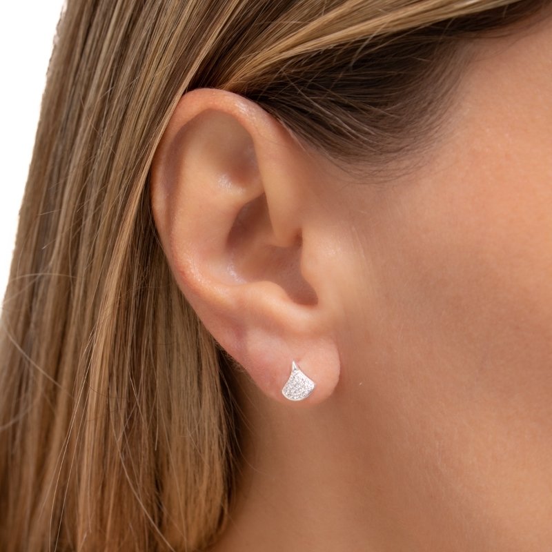 Brinco leque cravejado em Prata 925-SR, com brilho sofisticado e design marcante.Peças em PRATA 925.