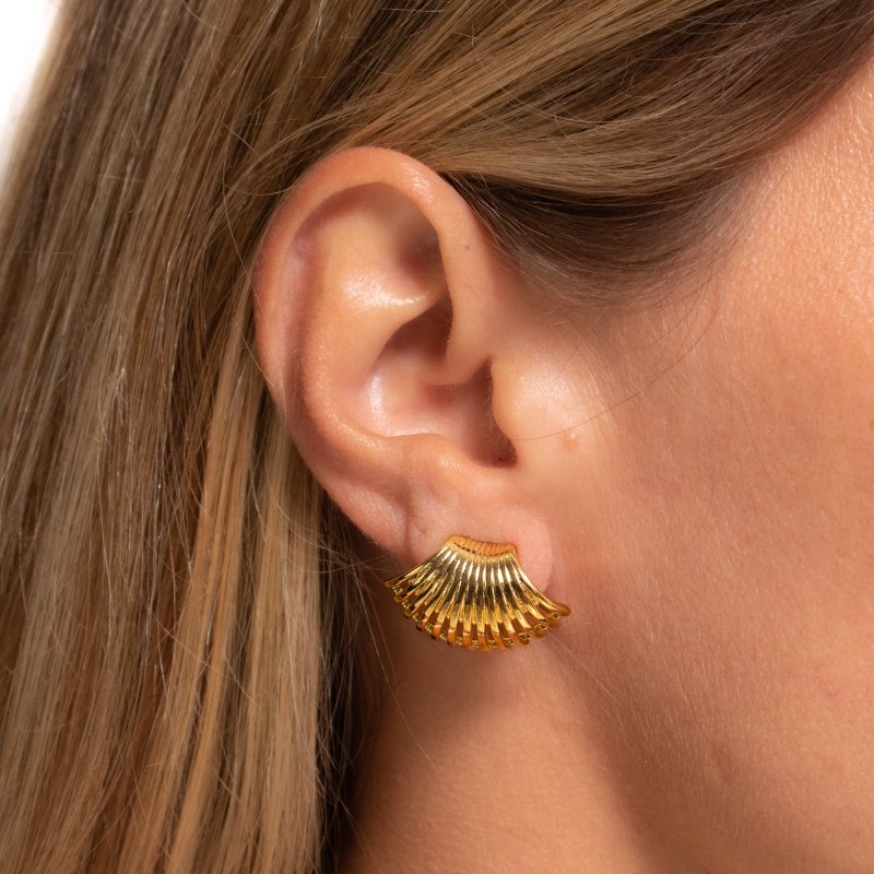 \"Brinco Leque espiral liso, elegante e moderno, perfeito para adicionar um toque de sofisticação ao seu look.\"Brincos e piercing fake: 5 milésimos de Ouro 18k.