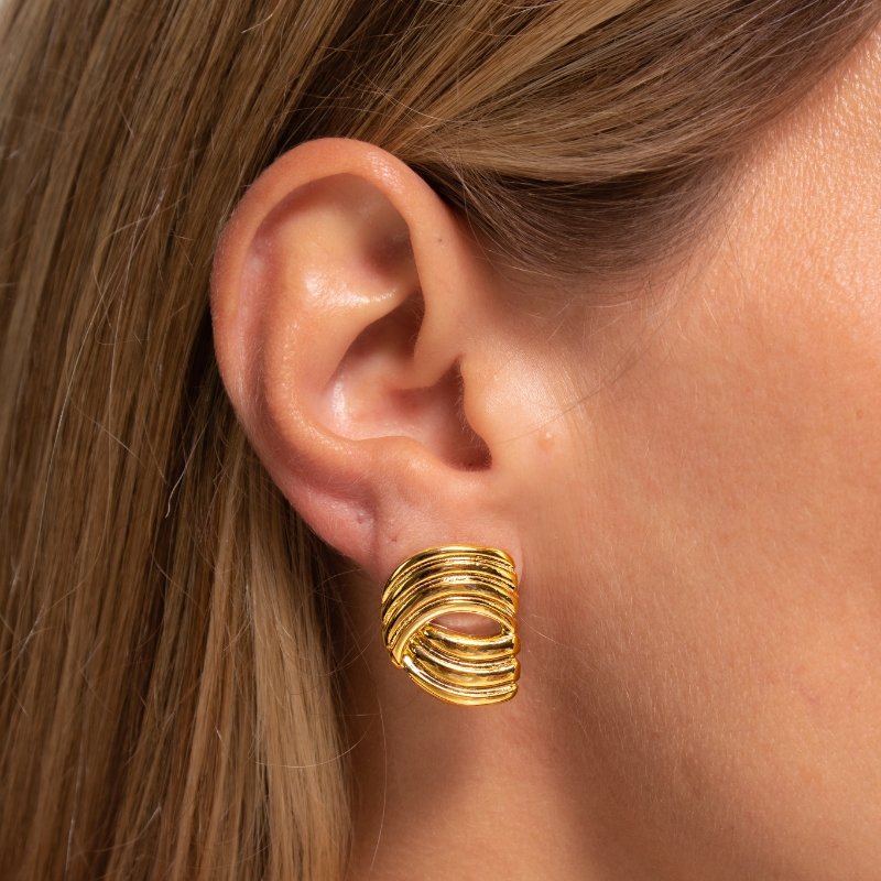 Brinco Meio Oval Detalhado 17mm: Elegância e sofisticação em um design detalhado, perfeito para um look moderno e refinado.Brincos e piercing fake: 5 milésimos de Ouro 18k.
