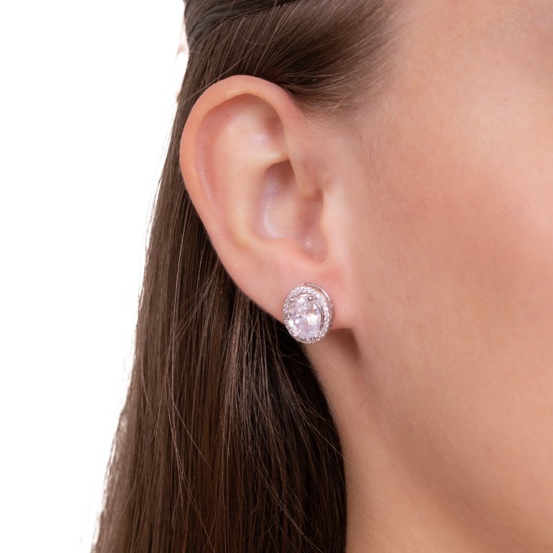 Brinco oval 12mm cravejado, elegante e versátil com brilho na medida certa.Brincos e piercing fake: 5 milésimos de Ouro 18k.