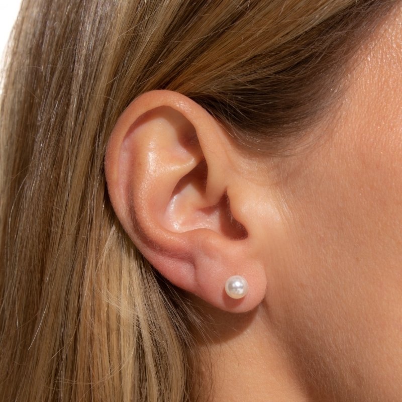 \"Brinco Pérola 6mm: delicadeza e elegância atemporal para complementar seu estilo com sofisticação.\"Brincos e piercing fake: 5 milésimos de Ouro 18k.