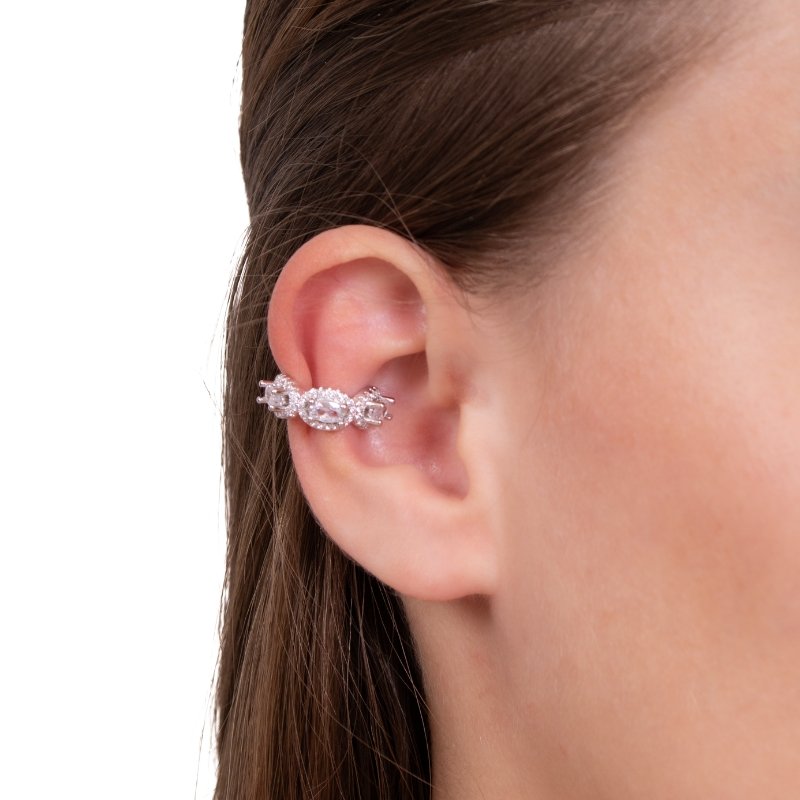 Brinco piercing fake cravejado, estilo moderno com brilho sem precisar de perfuração.Brincos e piercing fake: 5 milésimos de Ouro 18k.