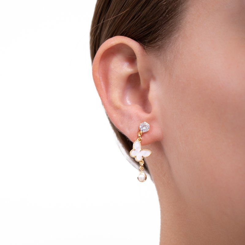 Brinco ponto de luz com borboleta, delicadeza e brilho em um design encantador e feminino.Brincos e piercing fake: 5 milésimos de Ouro 18k.