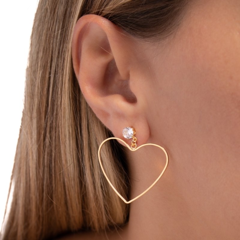Brinco Ponto de Luz Coração Vazado:\"Delicadeza e brilho em um design romântico com coração vazado e ponto de luz.\"