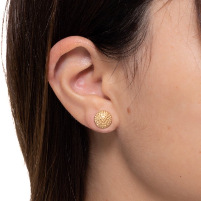 Brinco redondo craquelado 12mm, design sofisticado e textura exclusiva para um toque de brilho e estilo.Brincos e piercing fake: 5 milésimos de Ouro 18k.