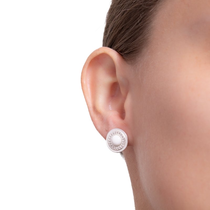 Brinco redondo cravejado com pérola, em Prata 925, ideal para um toque clássico e sofisticado.Peças em PRATA 925.