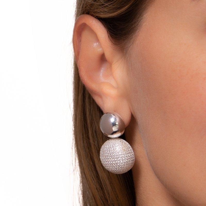 Brinco redondo pendente cravejado em Prata 925, brilho delicado e elegante para complementar qualquer look.Peças em PRATA 925.