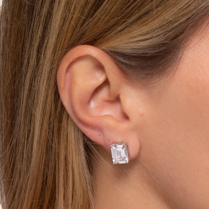 Brinco retângulo com zircônia 8mm em prata 925 com banho de rodio, uma peça elegante e moderna que adiciona brilho e sofisticação ao visual.Peças em PRATA 925.