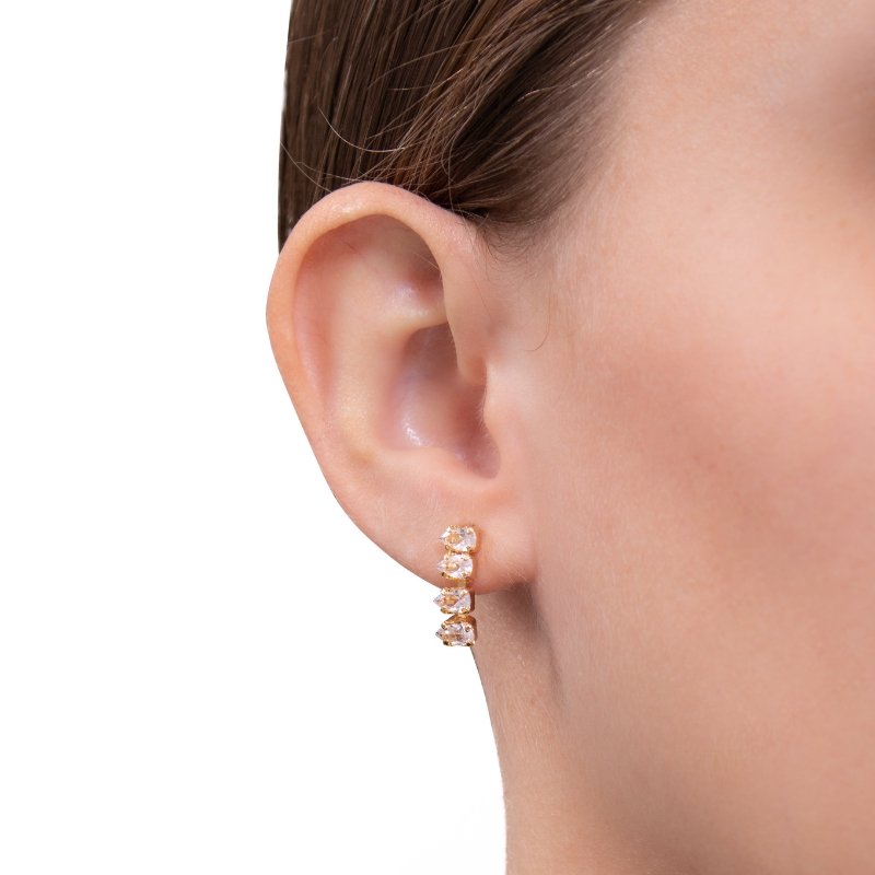 Brinco Riviera Gota, sofisticação e brilho em design eleganteBrincos e piercing fake: 5 milésimos de Ouro 18k.