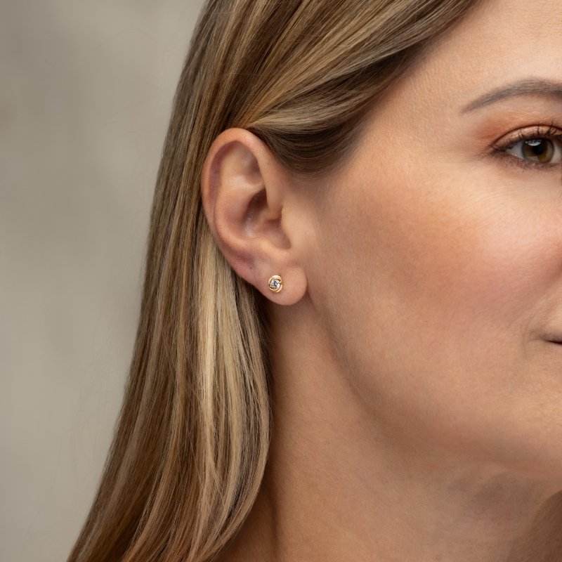 Brinco rosa com zircônia delicada, charmoso e sofisticado, ideal para quem busca um toque de elegância sutil e brilho no visual.Brincos e piercing fake: 5 milésimos de Ouro 18k.