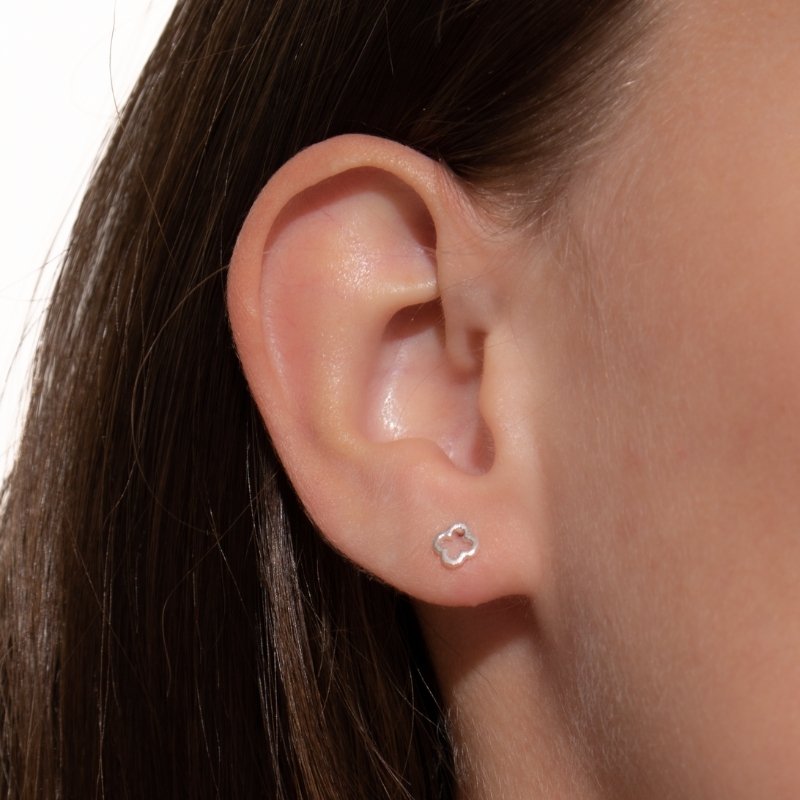 Brinco trevo 5mm liso em Prata 925, delicadeza e sorte em um toque minimalista.Peças em PRATA 925.