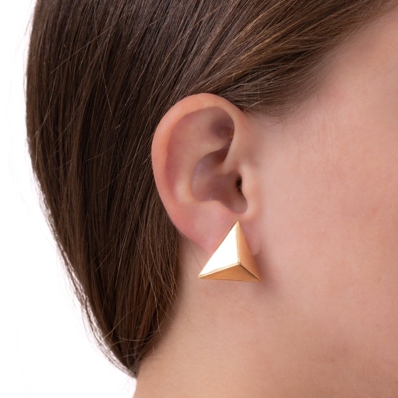 Brinco Triângulo Abaulado 22mm com design geométrico e acabamento elegante para um visual moderno.Brincos e piercing fake: 5 milésimos de Ouro 18k.