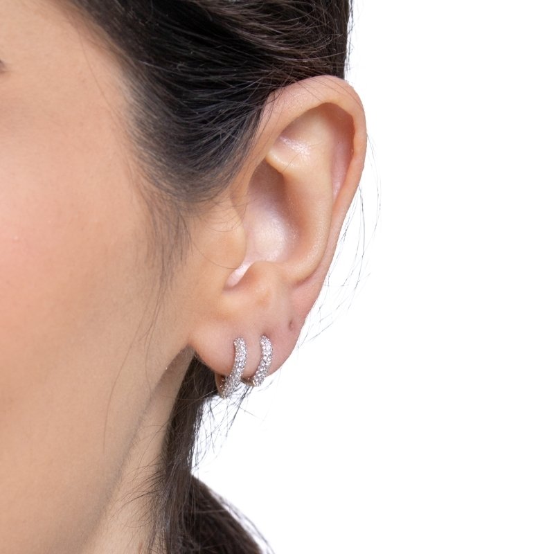 \"Brinco Trio Coração em Zircônia: Três vezes mais charme e brilho em um design romântico e sofisticado.\"Brincos e piercing fake: 5 milésimos de Ouro 18k.