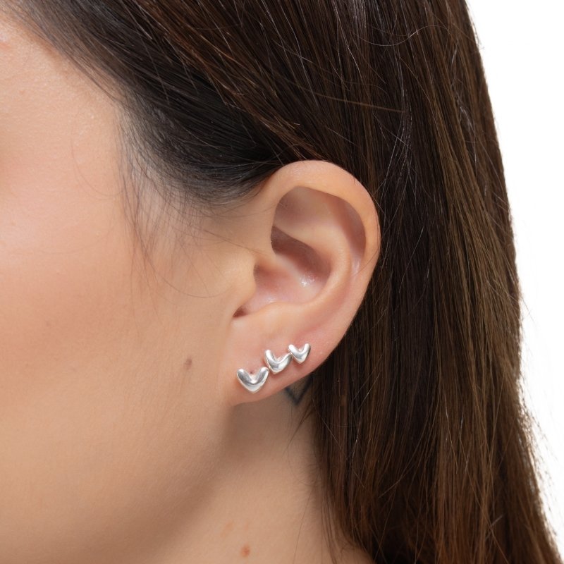 \"Brinco Trio Coração Liso Prata 925: conjunto versátil e sofisticado, perfeito para um charme atemporal!Peças em PRATA 925.