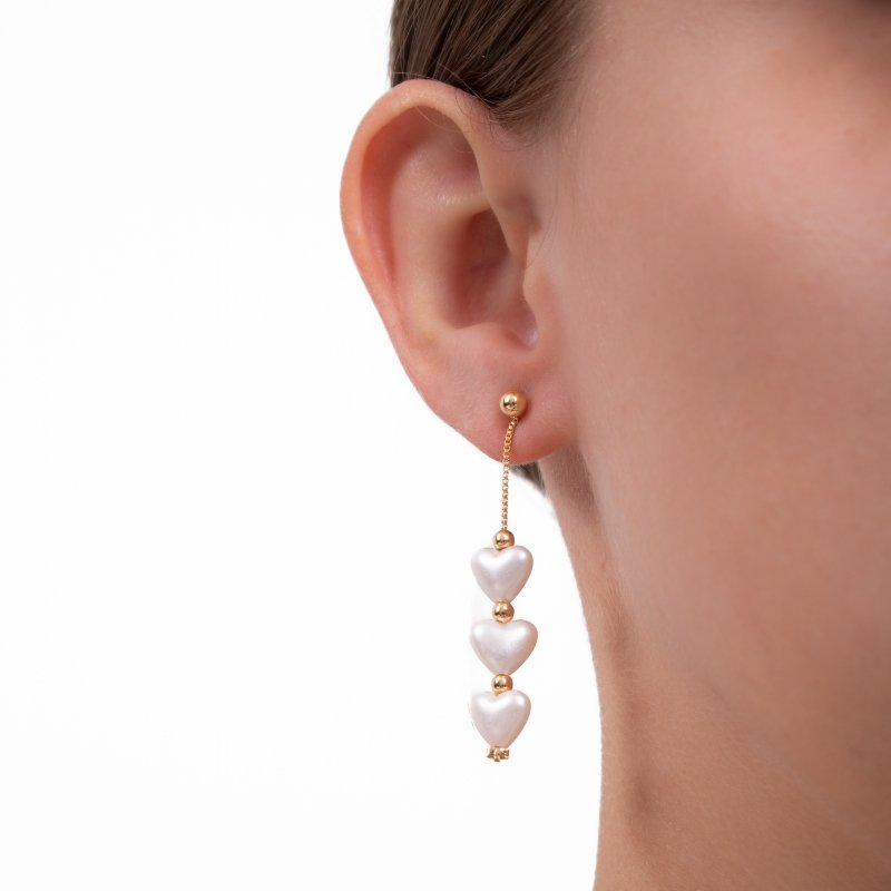 Brinco Veneziana com Pérola em Coração: toque romântico e sofisticado para seu visual.Brincos e piercing fake: 5 milésimos de Ouro 18k.
